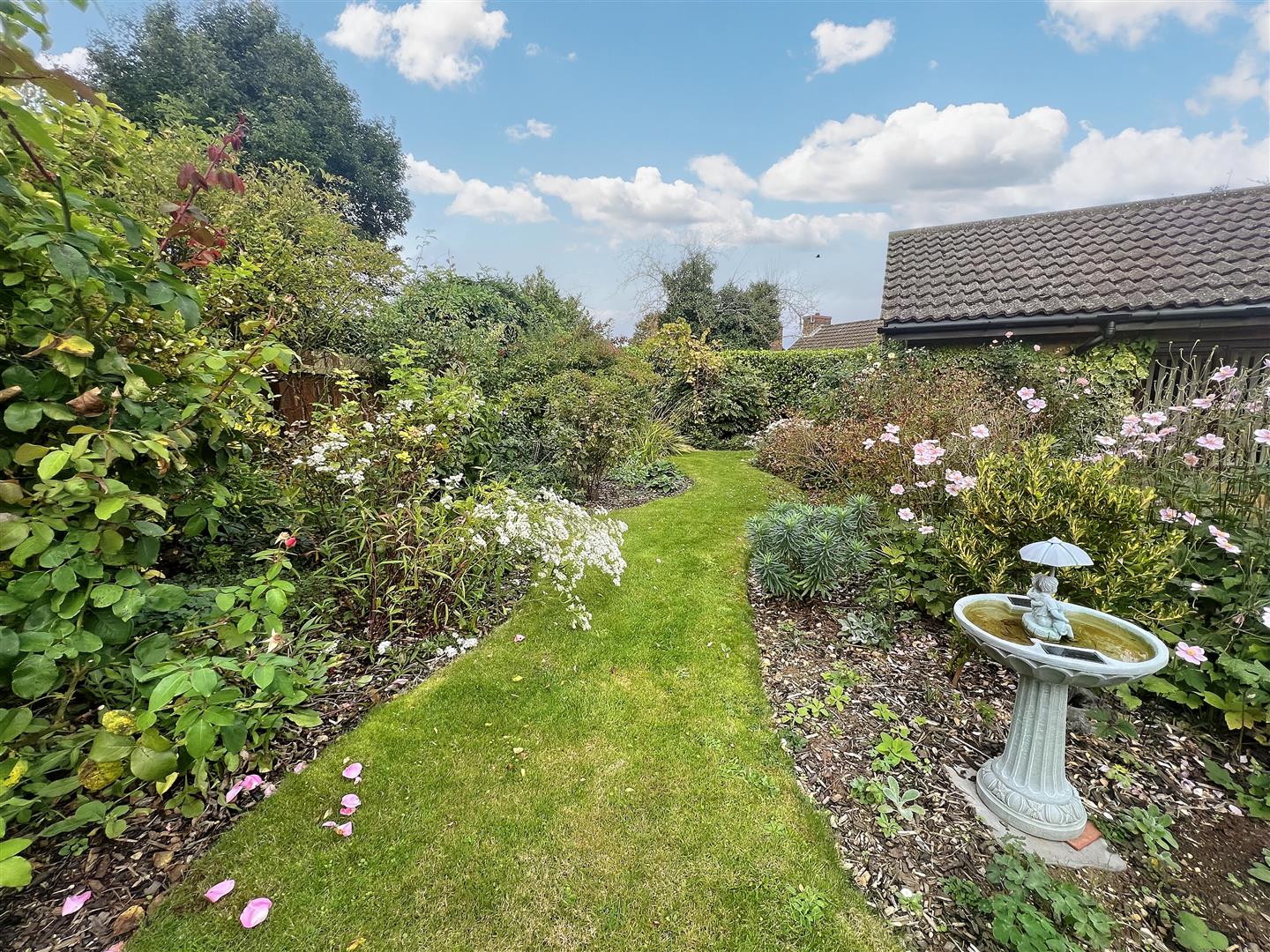 Laid to lawn which wraps around to the side and rear of the property with well manicured flower and herbaceous borders and beds, secret garden, laid patio, outside taps, electric power points and security lights, gated access on side enclosed by mature hedge row and fencing.